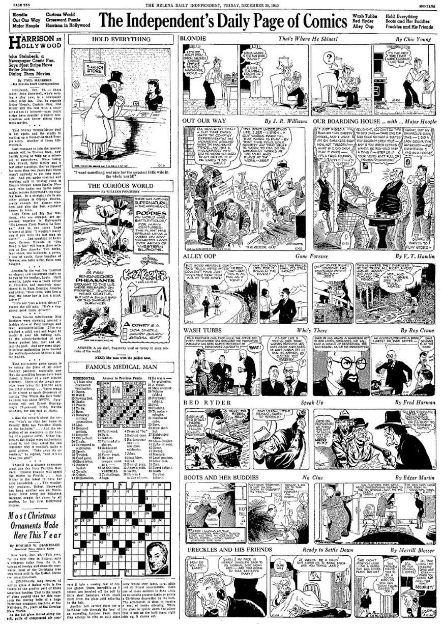 I heard the back-door slam as I was reading the last cartoon on the page. My brother dropped down onto the davenport. Snickering, he commented, “I’ll bet you think you’re reading the front page of the newspaper.”