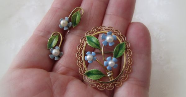 This is a vintage ‘Forget Me Not’ earring and brooch set made by Krementz. I wish they were in my jewelry box! I only have the posts that I wore on my wedding day. I’d bought them from Zweck’s Jewelry story in Marshfield.