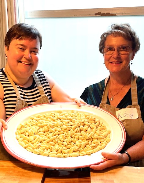 I loved the ridged cavatelli with its green, buttery, garlic sauce, but the swirl of fettuccine drenched in the tomato sauce we made was my favorite. The shape and texture of the noodles and the better-than-average sauce was totally satisfying.