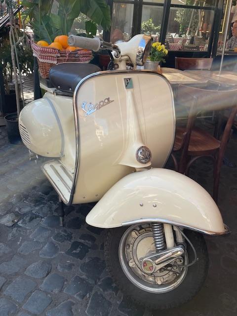 Outside the bus, the streets teemed with bikes, Vespas, smart cars and motorized scooters. These were travel options to avoid buying tickets and knowing schedules. Tammie and I laughed when we spotted a handsome young man dressed in a stylish suit and tie whiz by on a scooter. His briefcase was secured to the scooter frame and his tie fluttered in the wind.