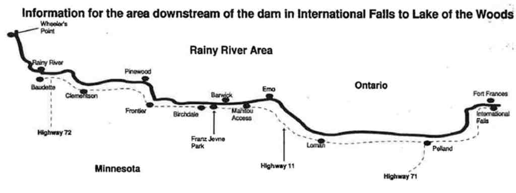 How long would it take for Canada to fix all the bridges and culverts for us to get home? We couldn’t stay in Canada for weeks! Finally, Terry tentatively suggested that if he was able to get his boat into the nearby Rainy River, it meandered 35 miles all the way to Fort Frances. He wasn’t sure of the route, but an Indian guide he knew would show him the way.
